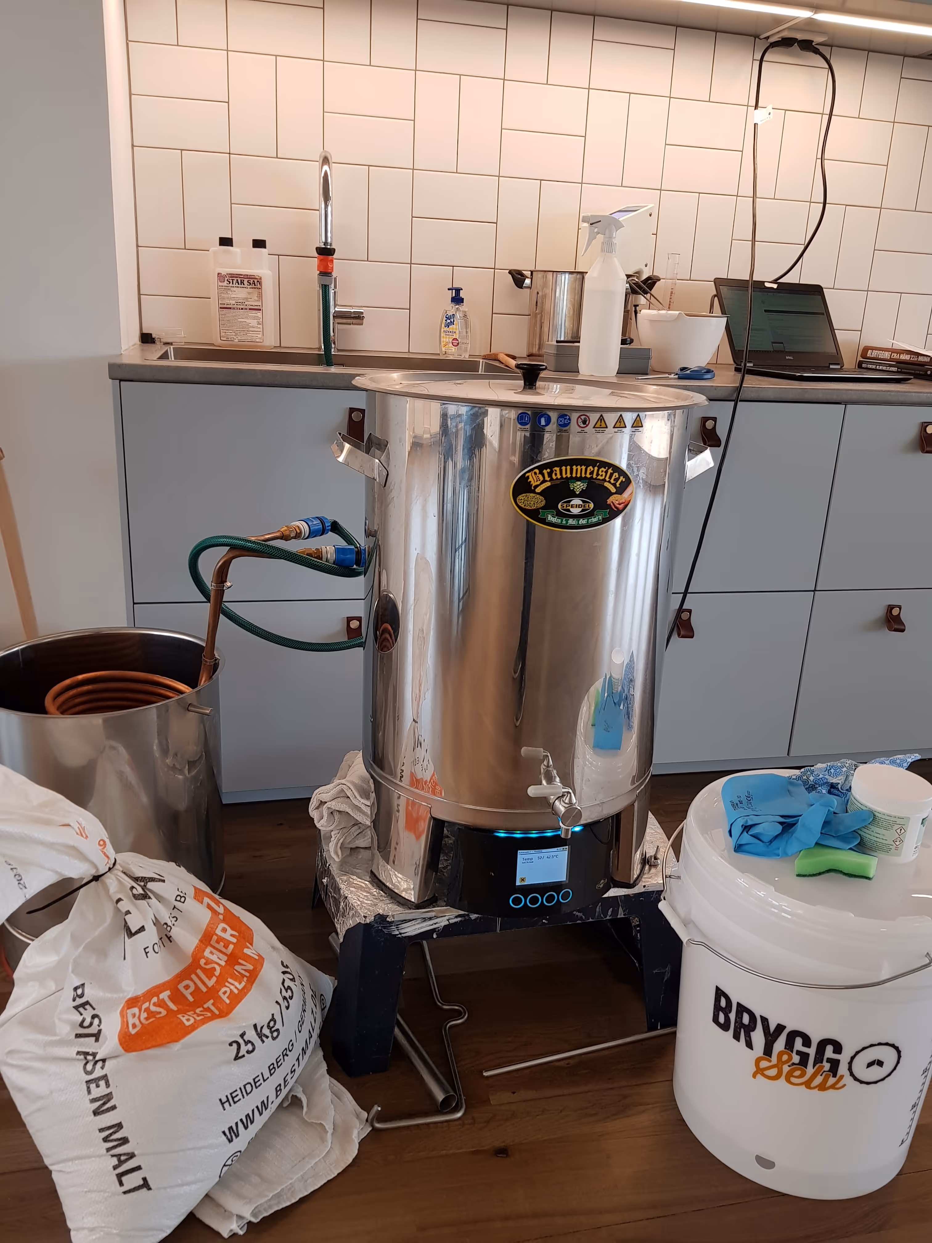 Da har vi hatt noen kvelder med brygging av eget øl til tappetårnet vårt.