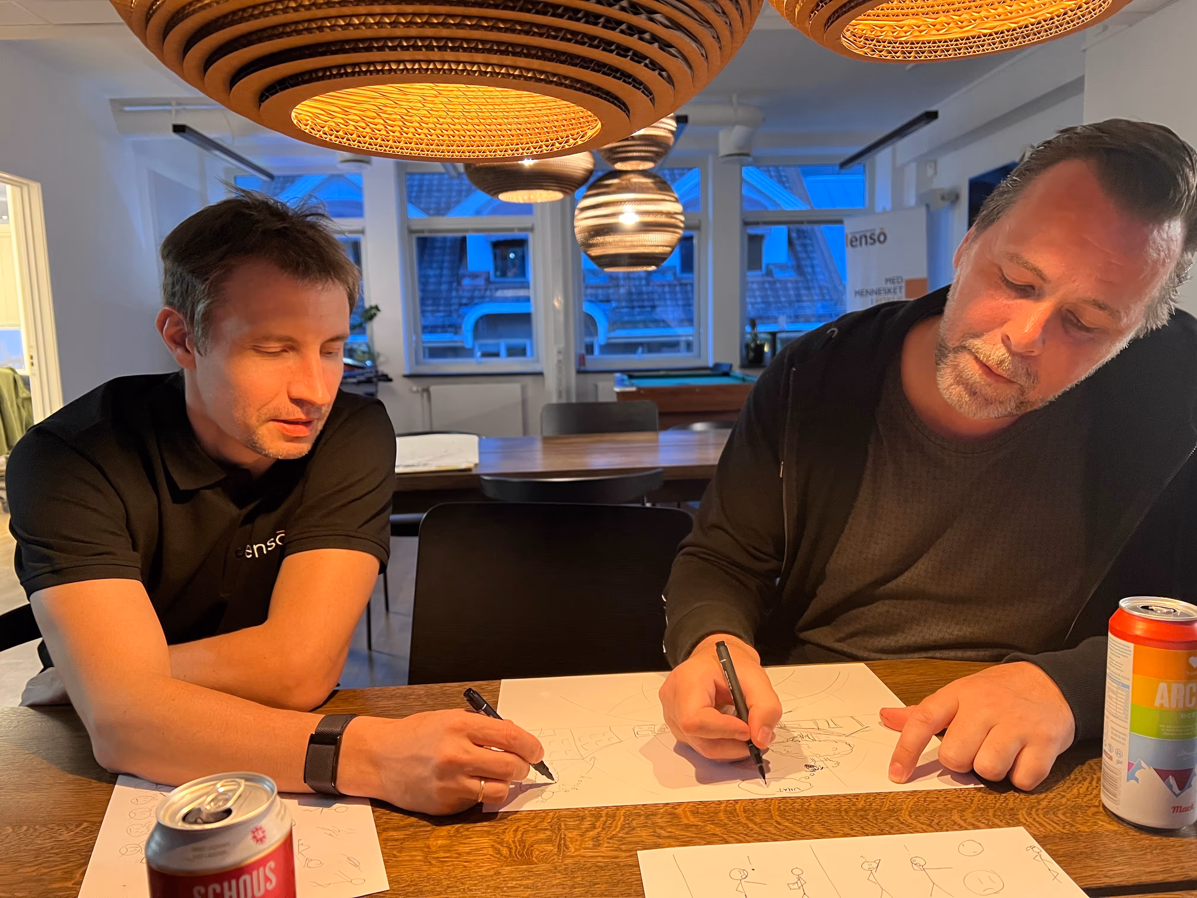Det var så gøy at Frikki og Evgeny ble sittende å tegne utover kvelden.