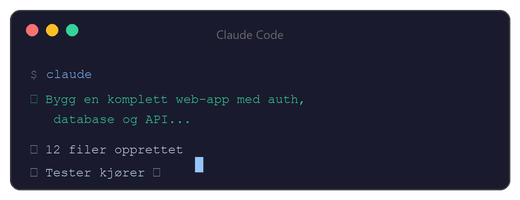 Etter noen få timer hands-on med Claude Code hadde jeg fått til mye mer enn jeg hadde forestilt meg. Jeg innså at med gode instruksjoner og forståelse kan alt bygges på denne måten. Vi trenger ikke være redde for sikkerhetsfeil eller ytelsesproblemer - så lenge man instruerer rett. Gamle diskusjoner om språk og tech-stack er ikke like viktige lenger. Java eller C#, JavaScript-rammeverk - Python, Java eller Kotlin, funksjonelt som F# eller Scala? Velg noe teamet kan og som er mye brukt. Teamet trenger ikke være eksperter, men forstå koden. Nå ber man AI forklare eventuelle forskjeller fra et språk man kjenner bedre - og lærer kjapt. Koding er rett og slett løst! Det som gjenstår er å vite hva som skal bygges - hvorfor, og hvordan.