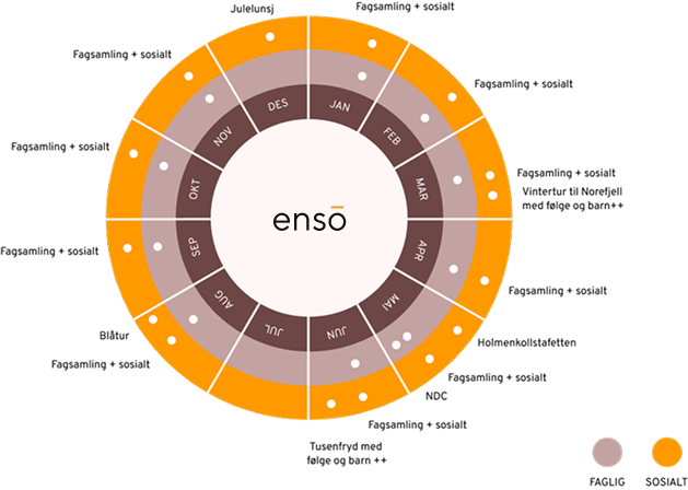 Vi liker å tilbringe tid sammen, både faglig og sosialt. I årshjulet ser du hvilke ting vi finner på i løpet av året.